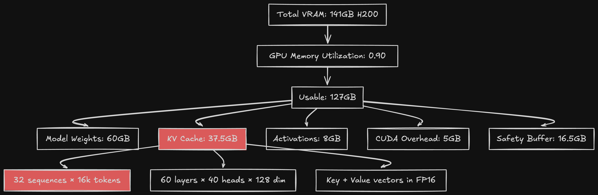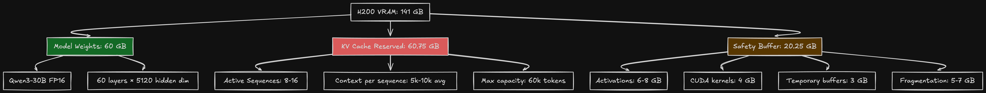 After settling on Qwen3-30B and ditching tensor parallelism, I thought my memory problems were solved. The model was 60GB, and my H200 had 141GB of VRAM. Simple math: I had 81GB to spare.