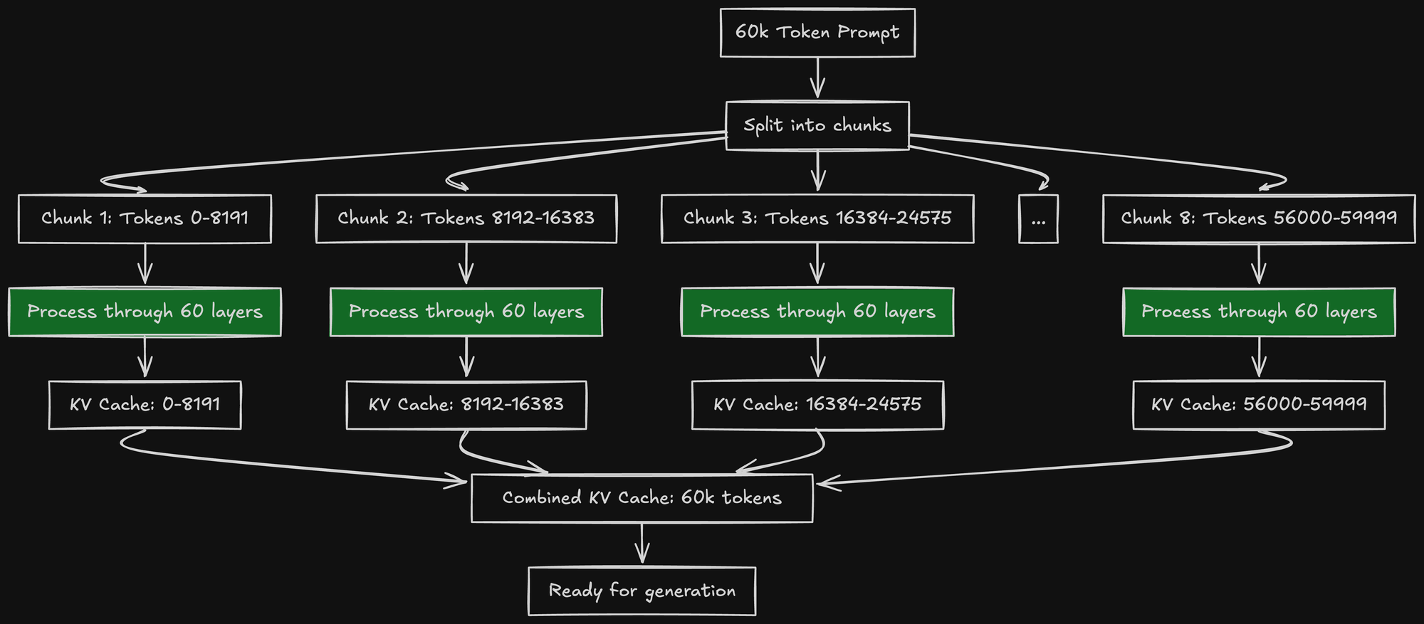 - Processes long prompts in 8k-16k chunks