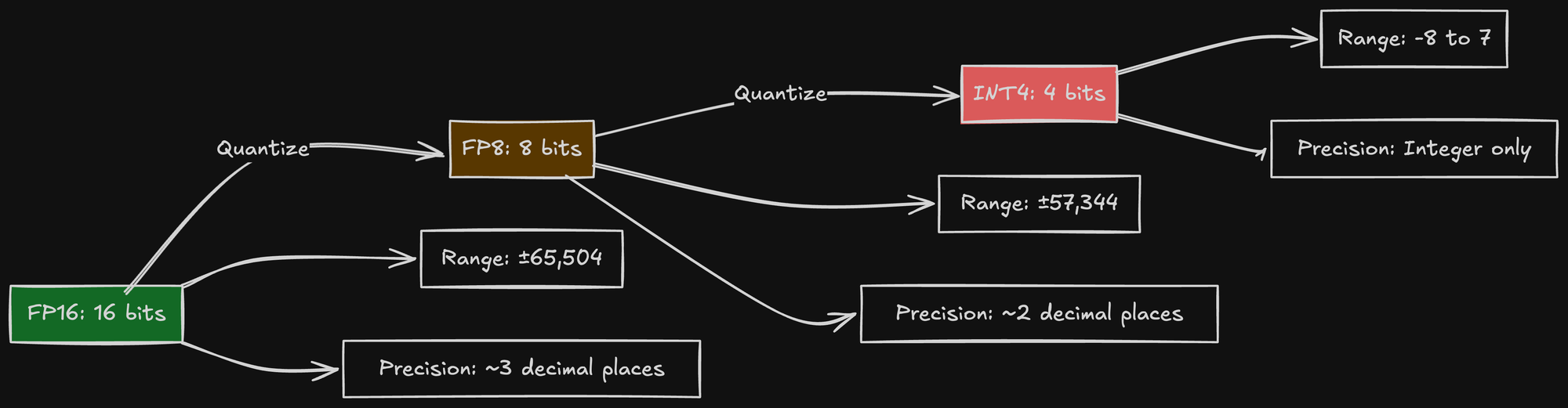 The trade-off is precision loss. When you round weights from FP16 to FP8, you lose information. The question is: how much does this affect model quality?