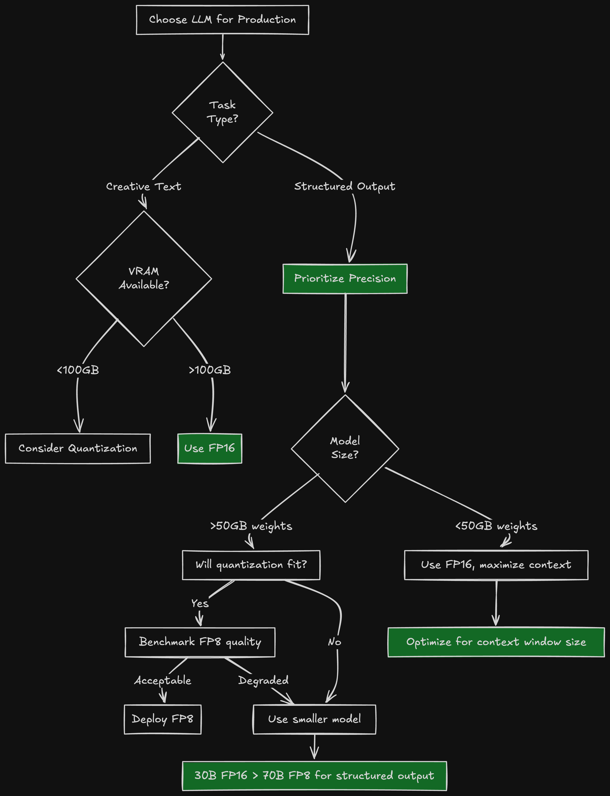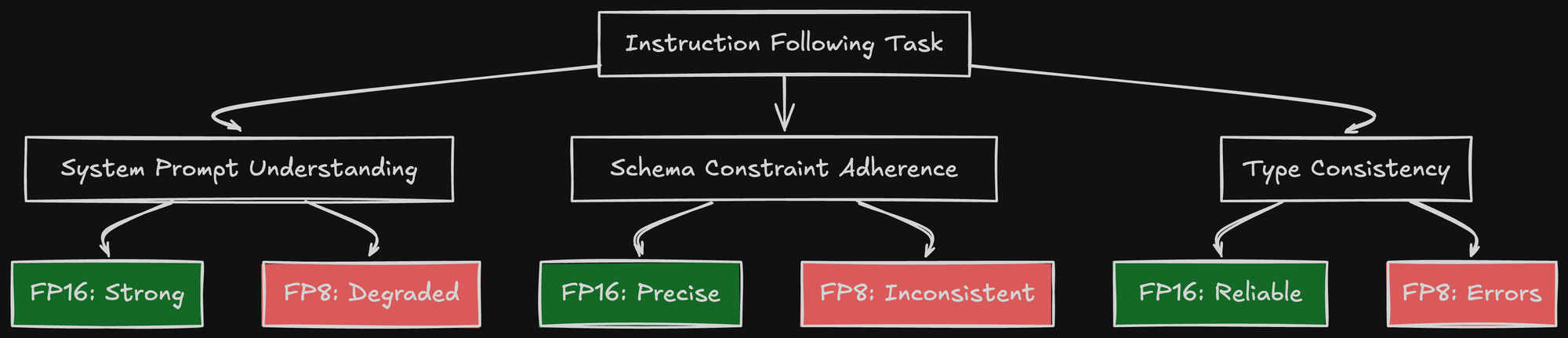For creative text generation, FP8 might be fine. For structured output, the precision loss shows up as schema violations and type errors.